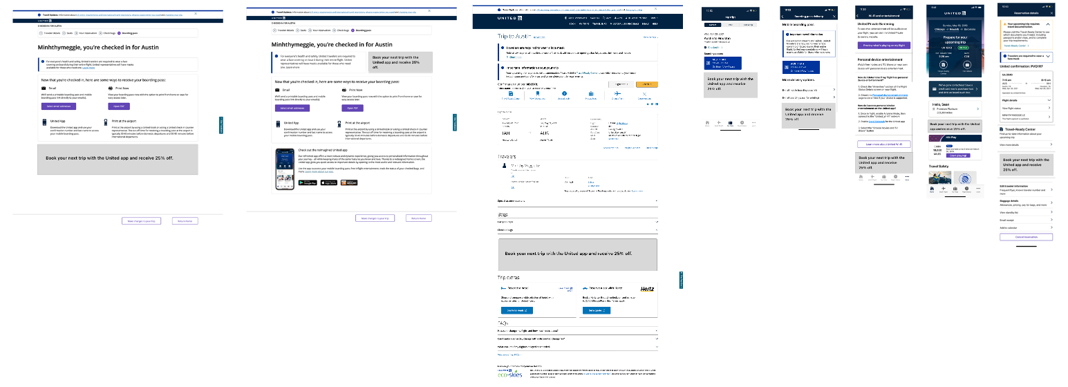Users needed to check in either on United.com or through the mobile app 24 hours before their flight regardless of where they booked it. However, some users would forgo doing it on digital channels and would do it physically at the airport kiosks.