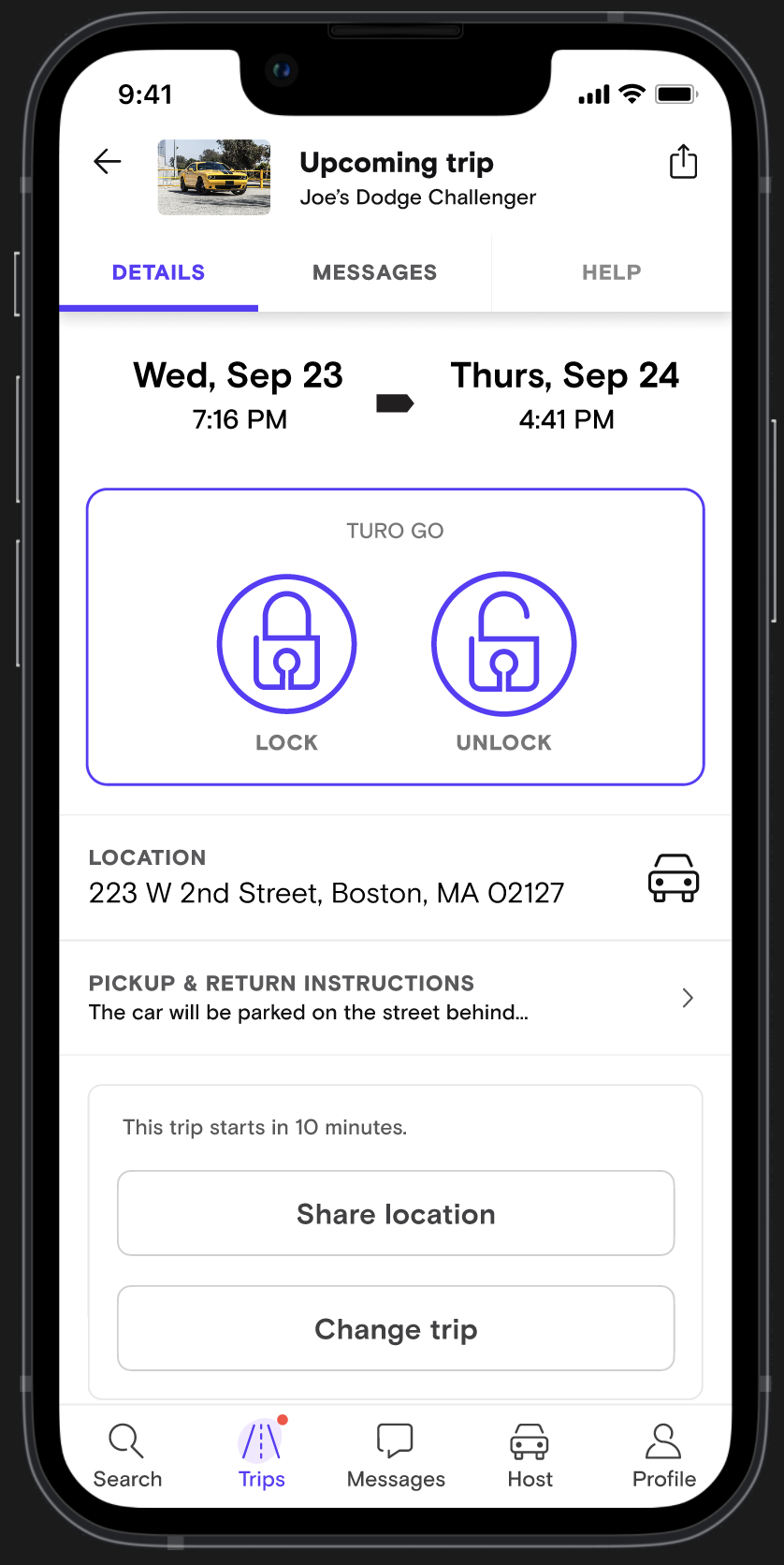 Once the host confirmed the guest’s identity, the app would enable the “Remote Unlock” if it was 30 minutes before the trip start time. This kept the process secure while maintaining a seamless, app-based experience for the guest