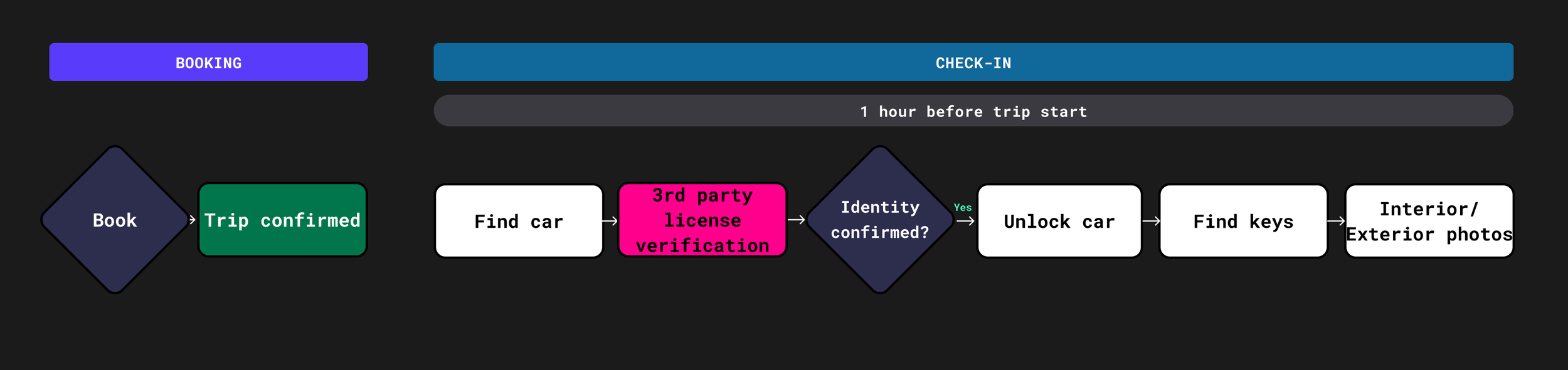 For remote Turo trips, guests needed to verify their license and identity using a third-party tool (Mitek) before checking out. This step created friction, causing drop-off and lost revenue — especially since guests had already passed ID checks when they joined the platform.