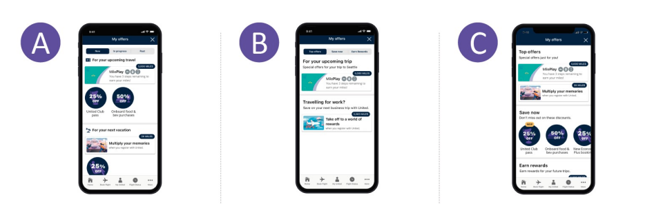 After a few months of waiting, we were able to get the funding approved and have worked with the dev and business team to groom the stories for the MVP. The MVP was built and launched after I had left, but you can see your personalized offers in the United app today.